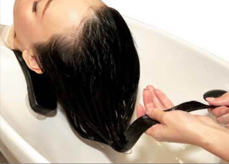 充分に水分を含んだ髪は余計なシャンプー剤をはじきますので